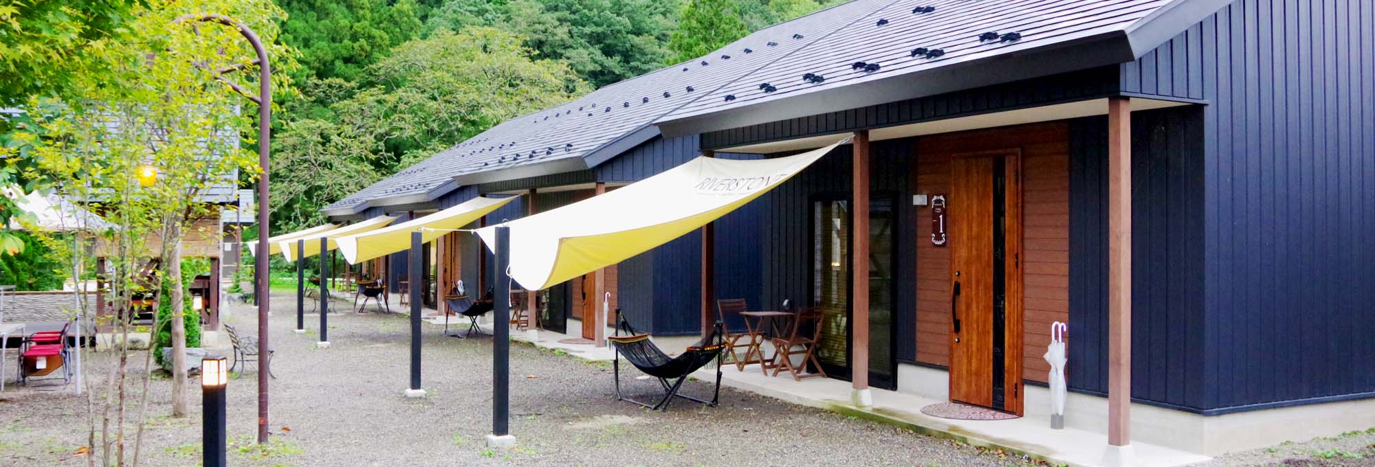 ・宿泊(温泉付きコテージ、キャンプバンガロー、グランピングコテージ、キャンプサイト)